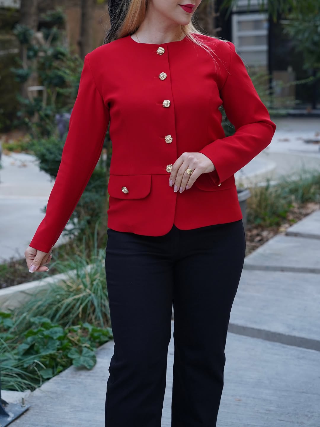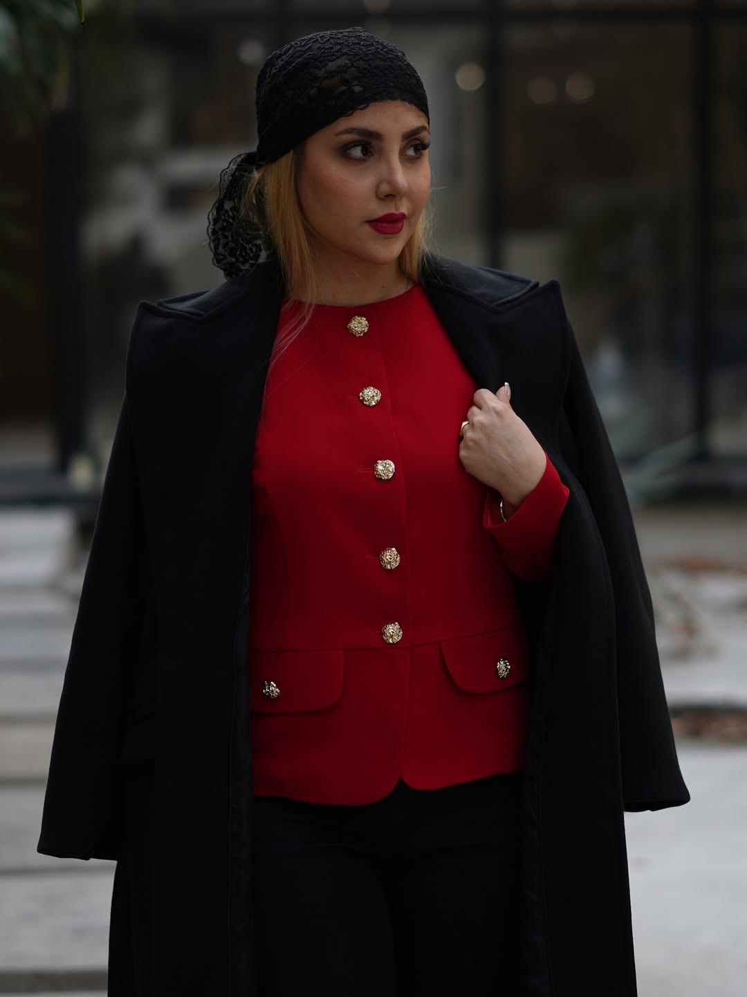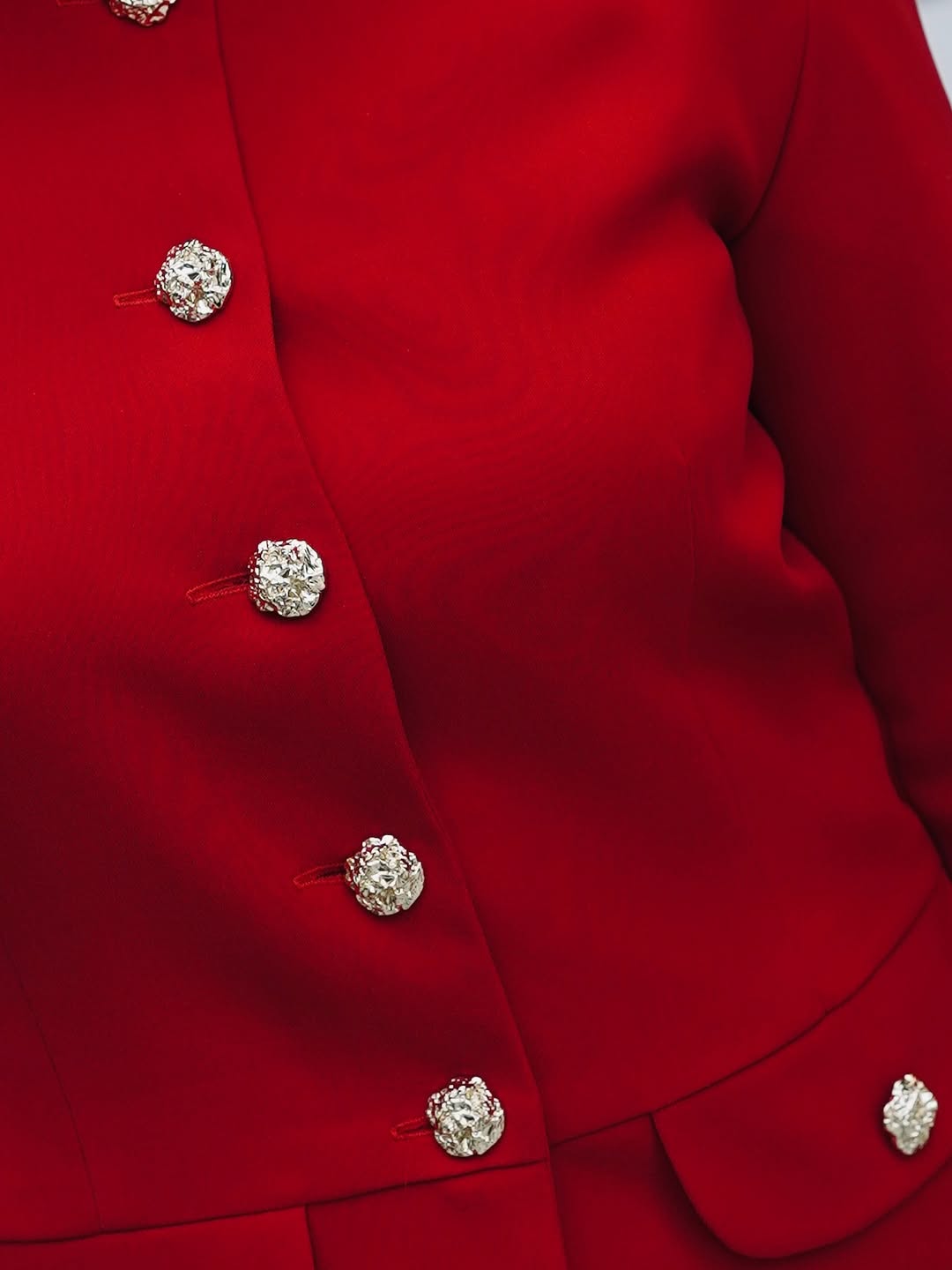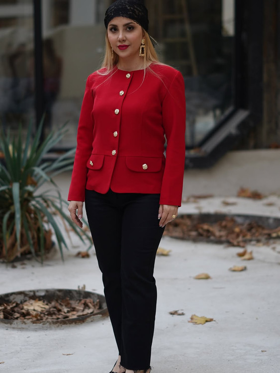 اصالت و هنر ایرانی در کت یلدا از کالکشن زمستان ۱۴۰۴ شیما ثقفی به زیباترین شکل ممکن تلاقی کردهاند. این کت با رنگ قرمز اناری خیرهکننده، مخصوص بانوانی طراحی شده است که میخواهند در شب یلدا و مناسبتهای خاص، استایلی متمایز و فاخر داشته باشند. متریال اصلی این کار از کرپ اندونزی درجه یک تهیه شده که به دلیل ریزش عالی و بافت منسجم، تنخوری بسیار شیک و کتی به لباس بخشیده است.